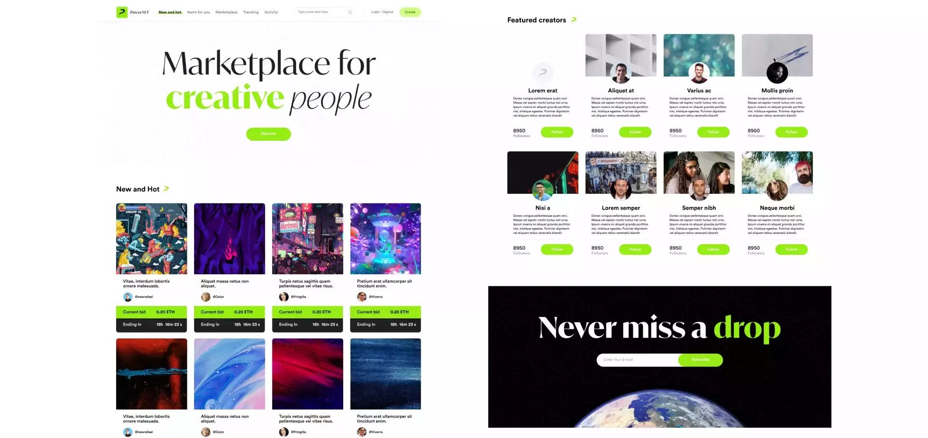 Рабочая площадка для торговли невзаимозаменяемыми токенами использует категории, теги, фильтры, сортировки по ликвидности и активности, а также предлагает блоки рекомендаций по интересам пользователя.