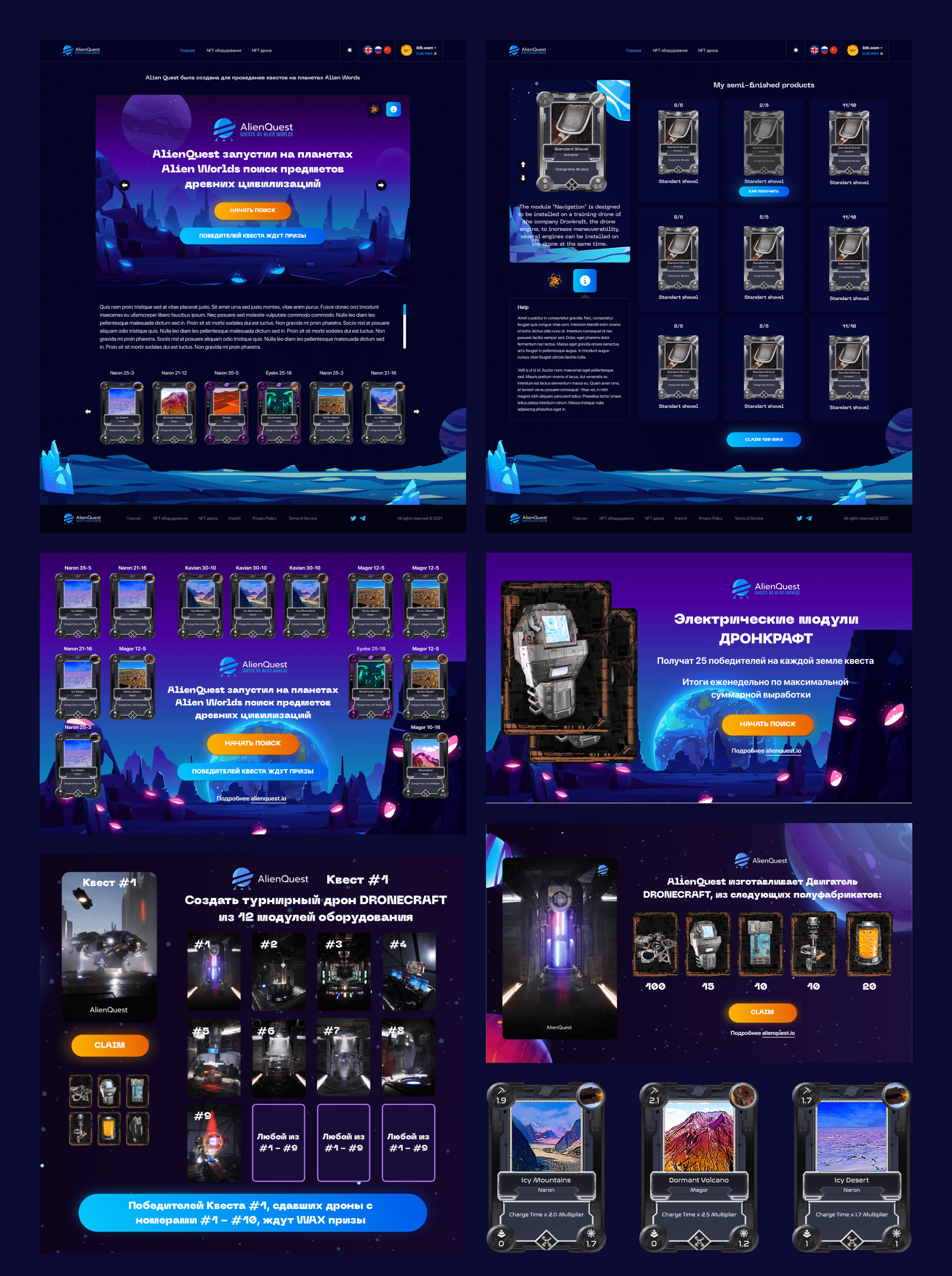 - NFT assembly mechanics: the gameplay is based on assembling NFT equipment and drones from mined elements. Players can mine resources, combine them into unique combinations, and create their own NFT objects.