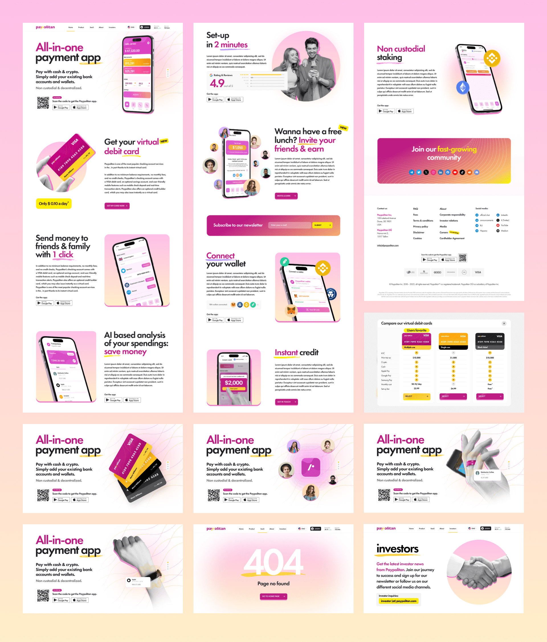 - App download via QR code, App Store, and Google Play