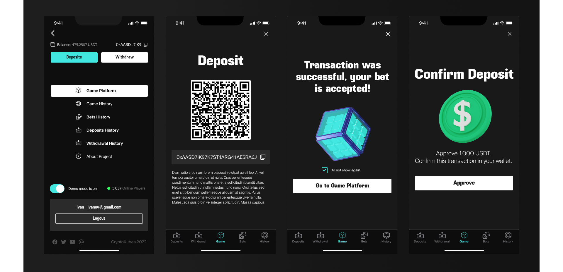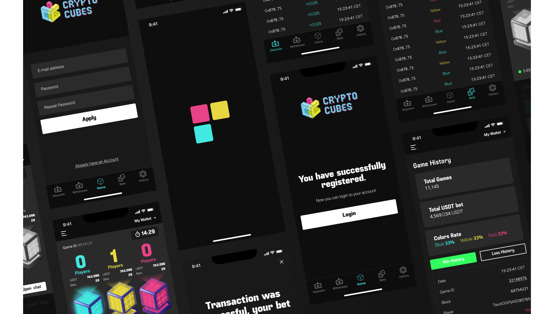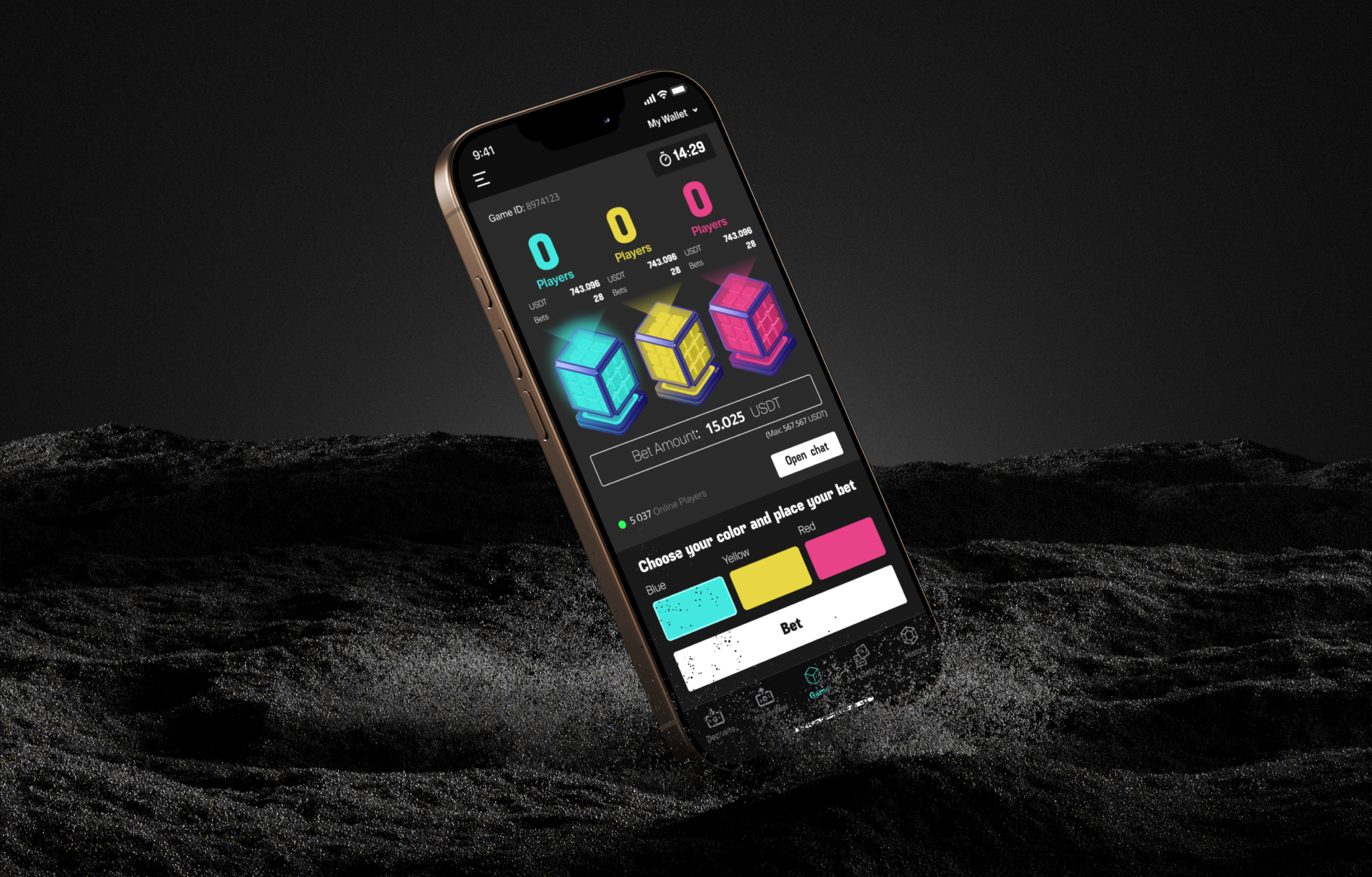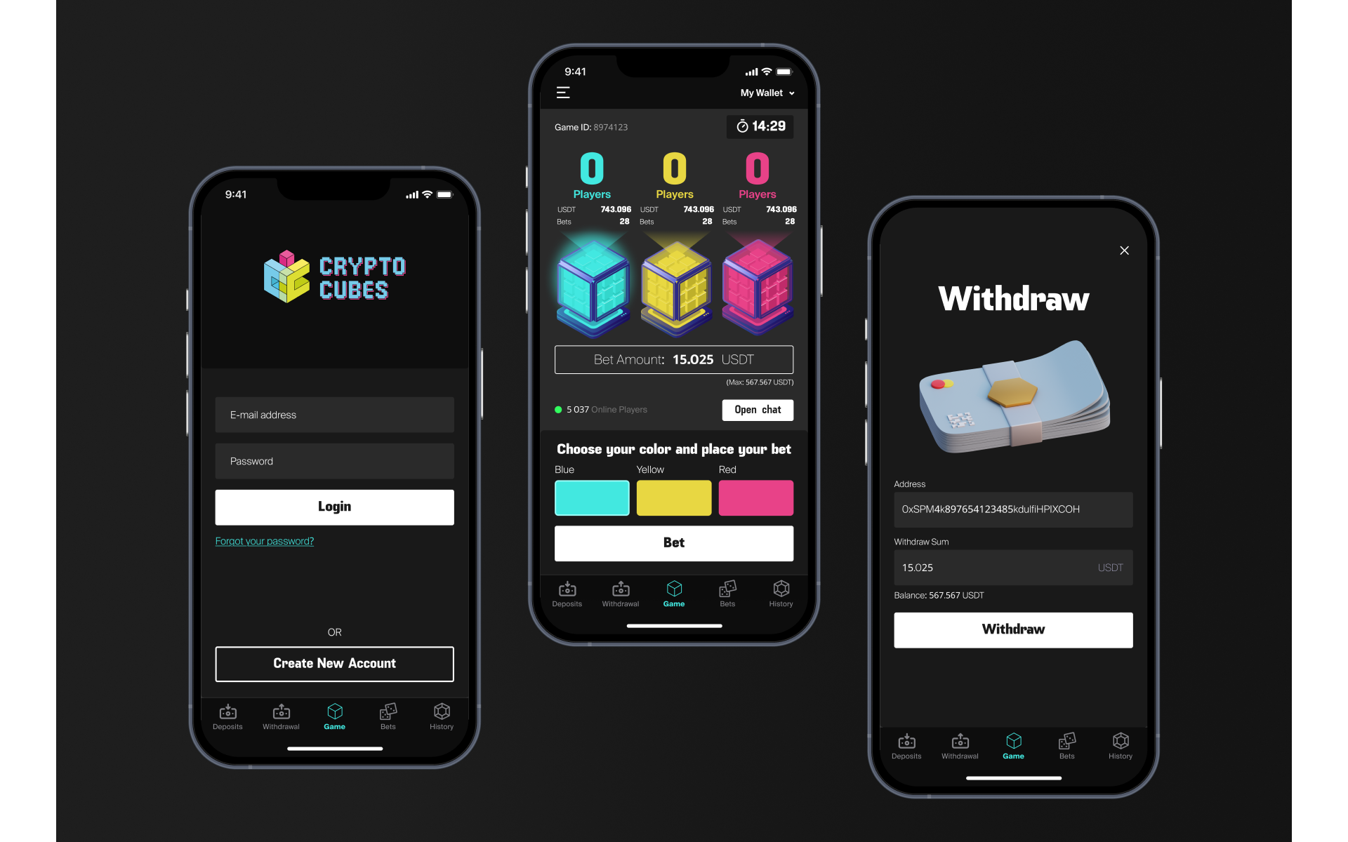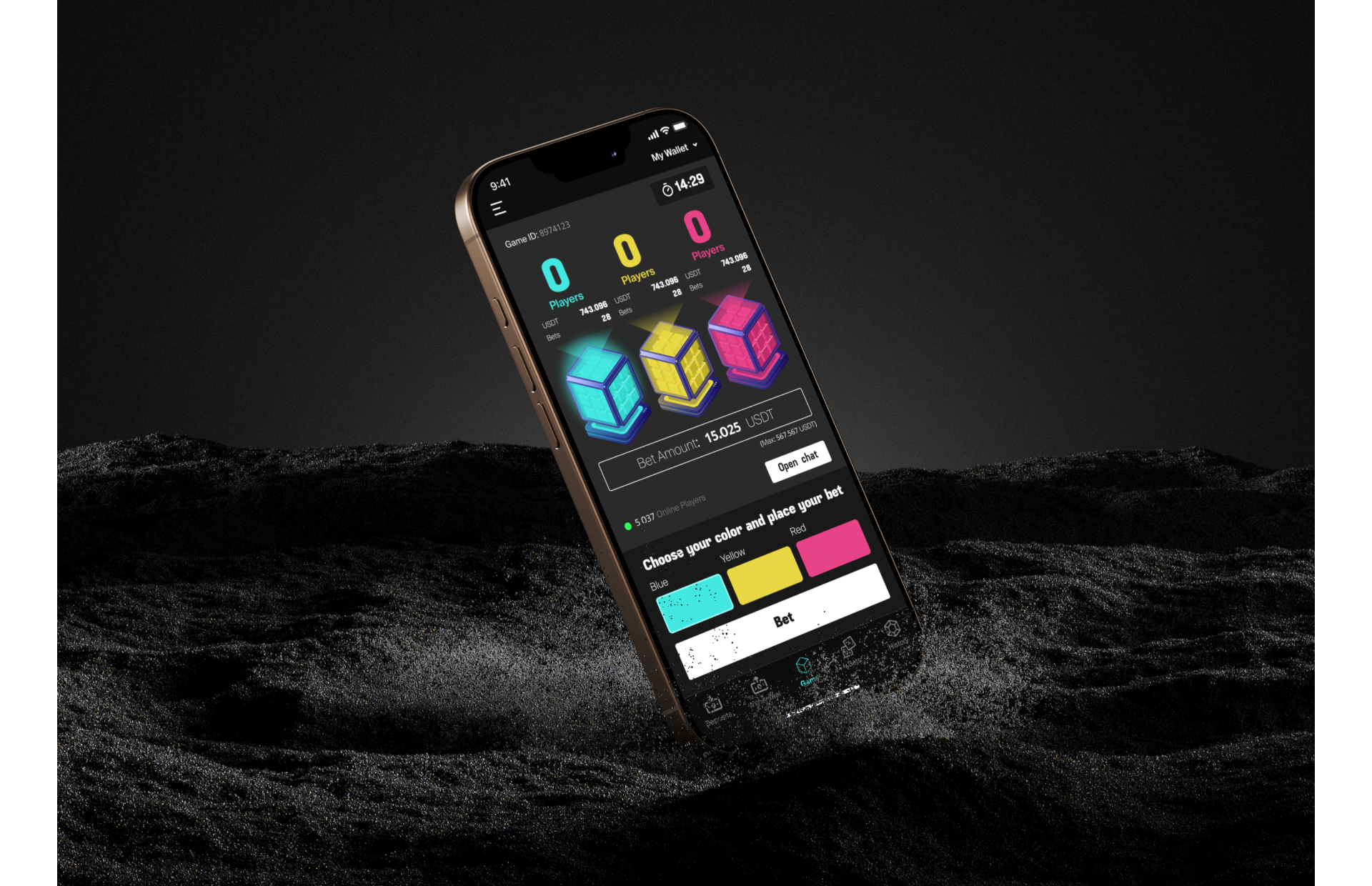 A blockchain game with a betting mechanic in which users place bets in USDT on the colors of cubes, based on smart contracts on the Tron network. The application is implemented as a cross-platform solution for iOS and Android with support for a crypto wallet and a gaming interface.